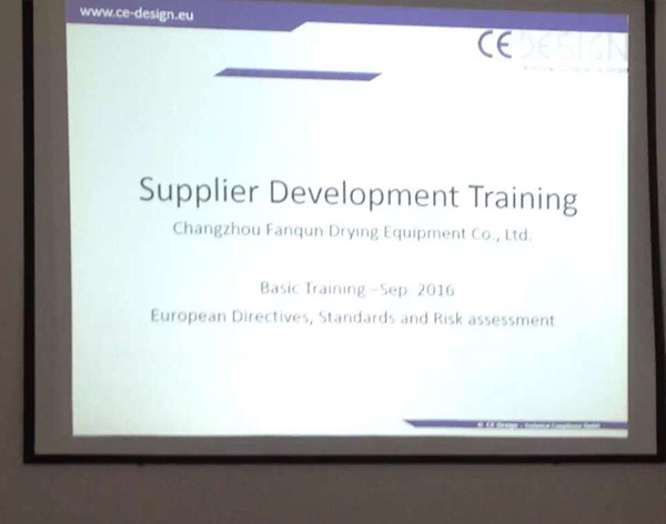 2016年9月2日至9月8日,我公司專門聘請德國專家為公司員工進行歐洲機械指令、CE(CE certification)等安全方面的培訓。我公司組織技術、生產、質檢、工藝、售后等部門認真聽取課程內容,各部門結合自身情況積極互動,取得了良好的效果。經過本次培訓,我公司各環節的行為將更加規范化、標準化,未來將會為客戶提供更好的服務。