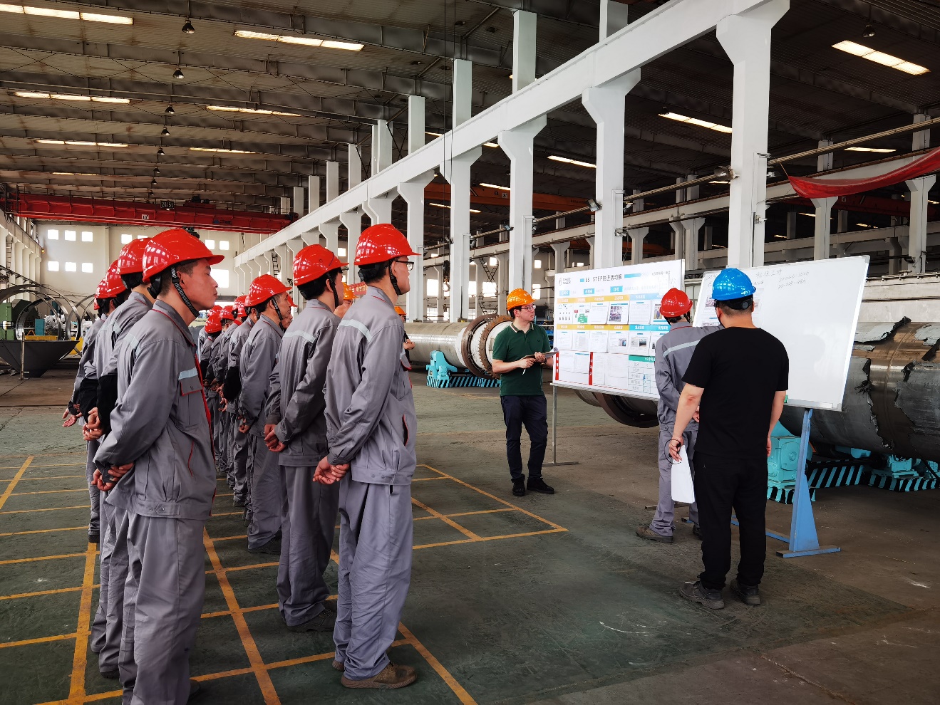 在新年伊始,公司總經理提出了在生產一線全面推行TPM管理體系的戰略定位,并將其作為公司未來發展戰略的關鍵支撐。一個人指明方向,一群人朝著這個方向努力。制造中心在快速消化吸收公司TPM戰略定位后,帶著激情,帶著勇氣,帶著創新,帶著員工一起投入了新的戰斗。今天上午,生產部L1車間-先鋒隊、L2車間-奮斗隊奮、管道車間-老狼隊、機加車間-沖鋒隊和軍工車間-飛躍隊奮勇爭先,共同組織發起牛年第一次0 STEP總經理診斷, 五個隊經過全面充分的準備,厚積薄發一舉通過TPM 0 STEP總經理診斷,下面跟隨鏡頭來看下五個隊的精彩瞬間。